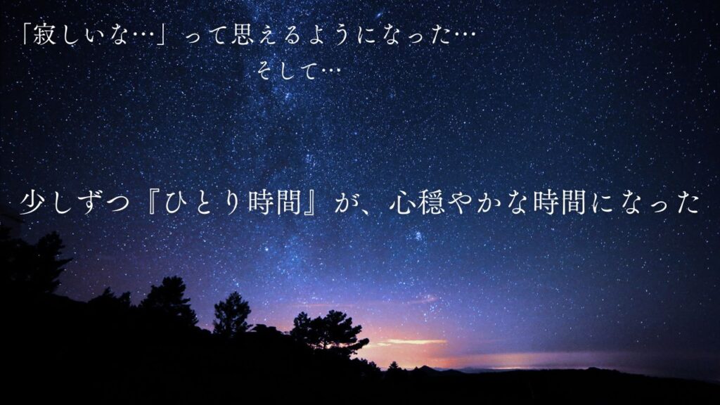 そうこうしているうちに、一人でいる時間がとても心地よいひと時になっていることに気がつきました。